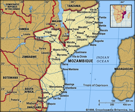 Mozambique, located